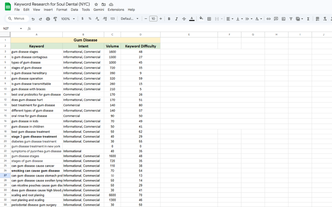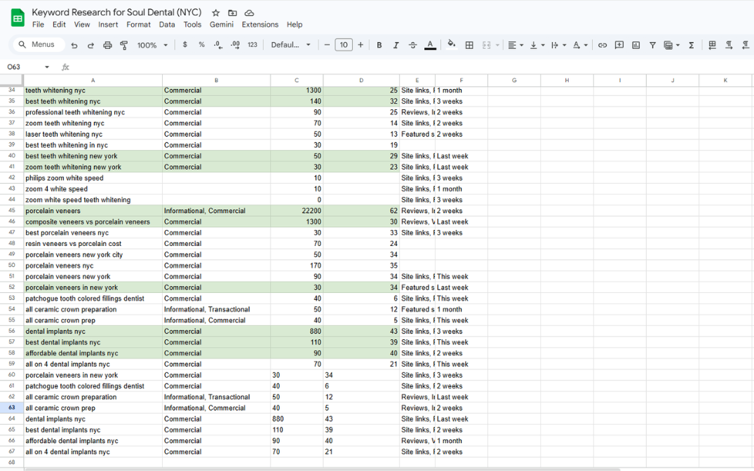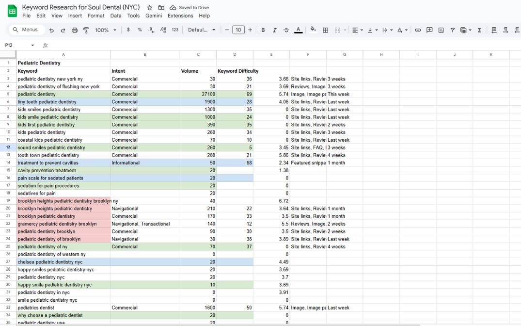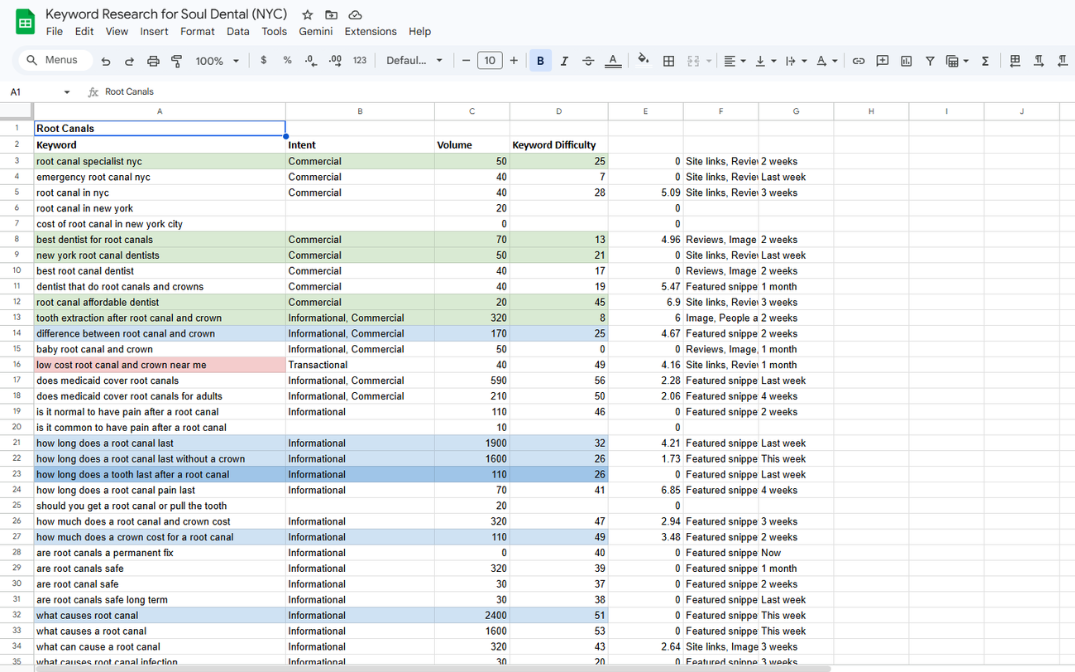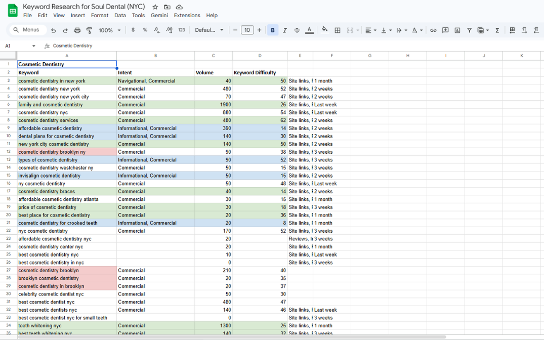This keyword research project for Soul Dental focuses on high-intent search terms tailored to modern dental practices and patient care. By analyzing local SEO opportunities and competitive metrics for services like cosmetic and general dentistry, the strategy identifies a data-driven path to increase clinic visibility and patient bookings.